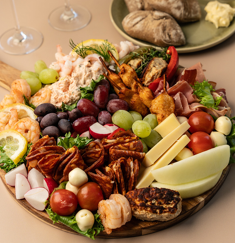 Luksus Tapas, med mulighed for tilkøb af sodavand eller frisk presset appelsinjuice. 1 box gælder til 2 personer for 310,-