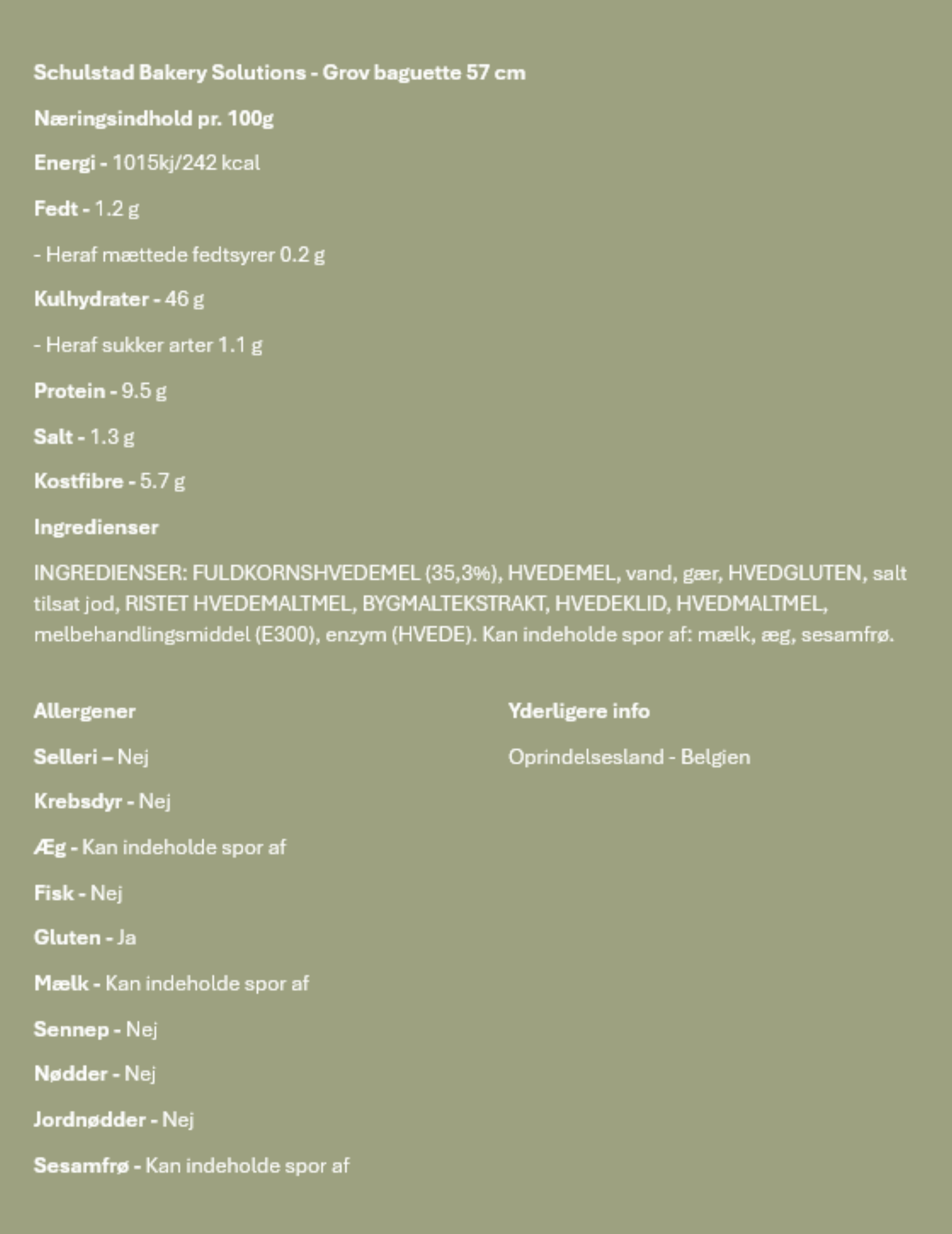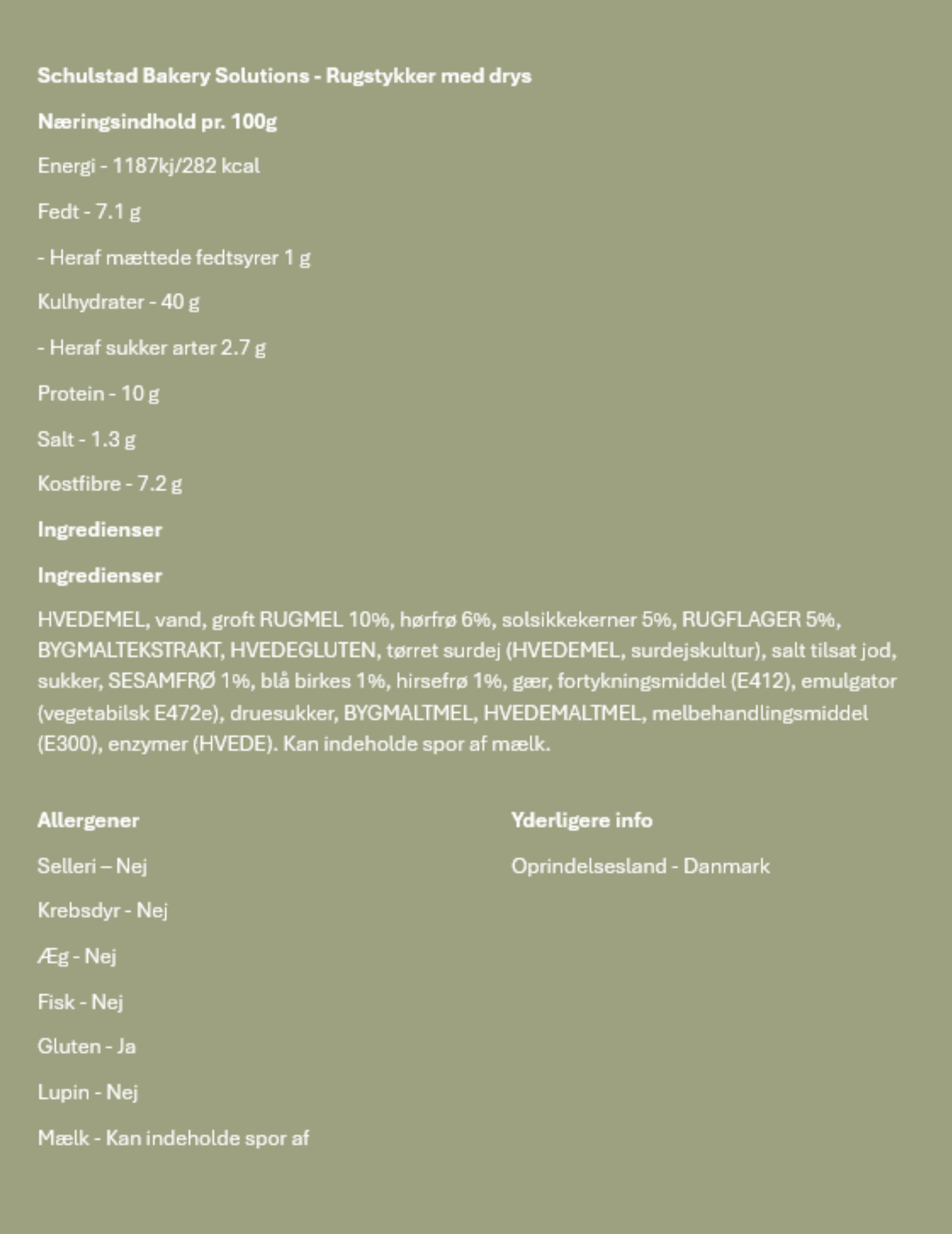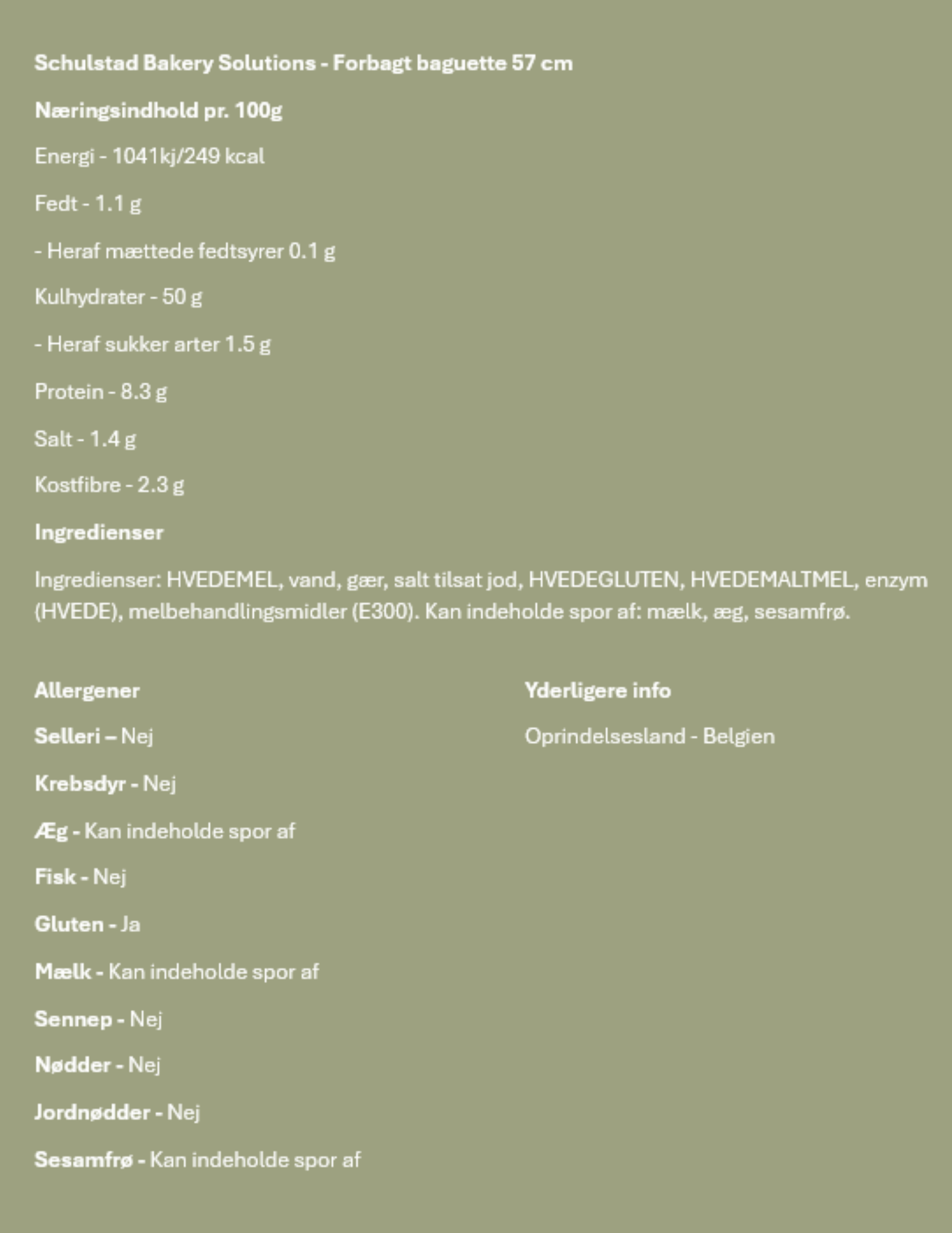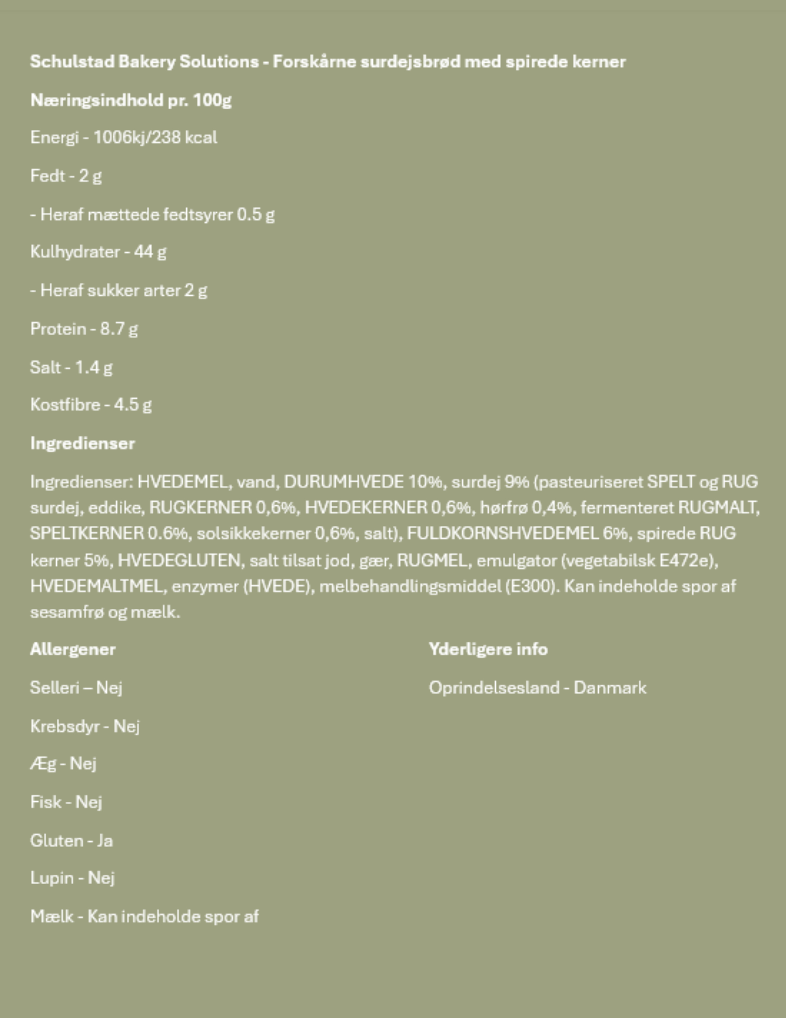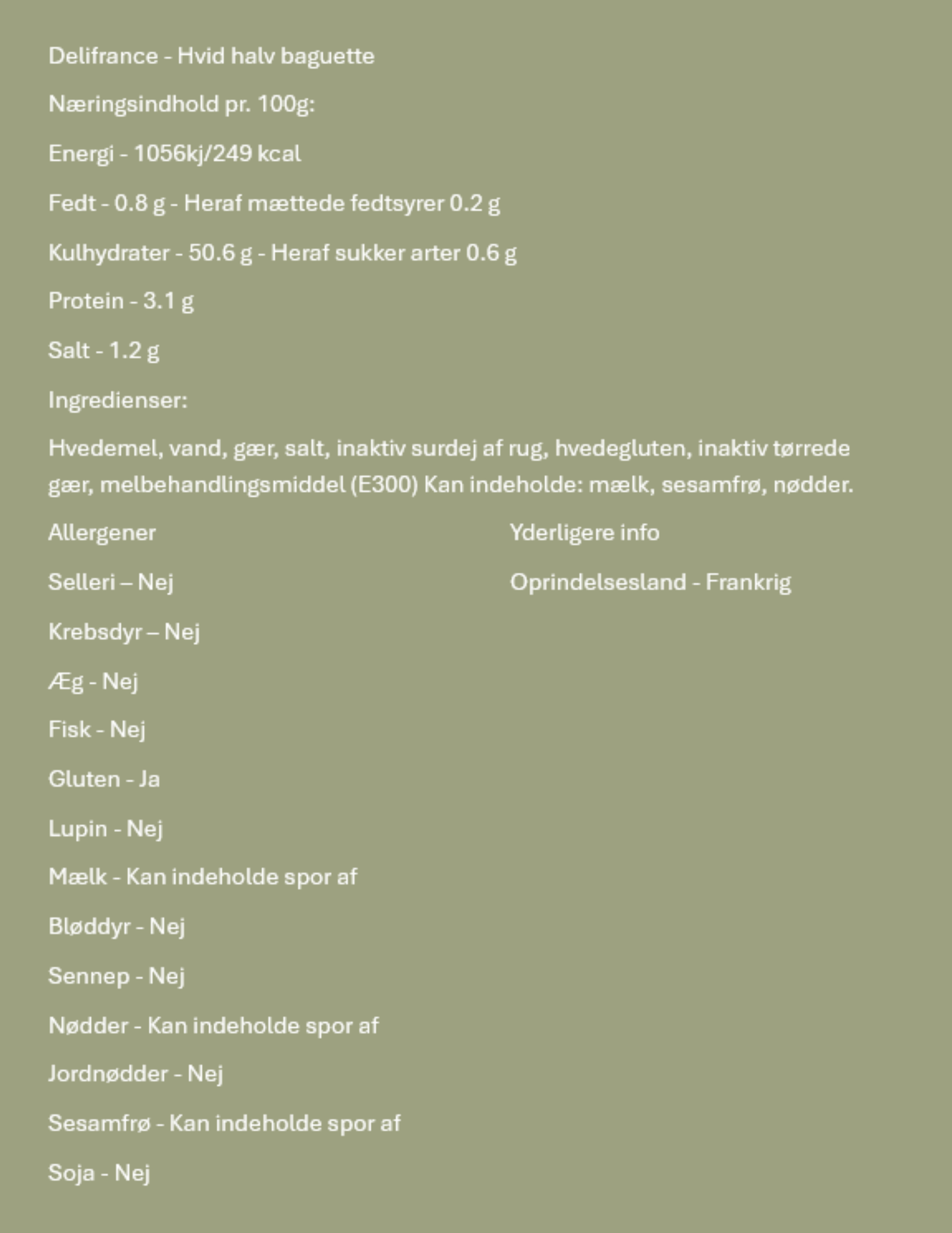 In the list below, you can find the ingredients and allergens for all our different types of bread.